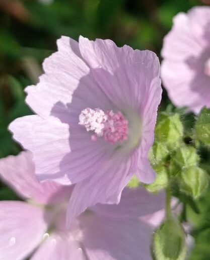 Un peu de douceur dans ce monde de brutes… Notre amie la mauve …alcée pour vous servir, il y en a d’autres, sauvages, crépue, musquée…elles font parties de la famille …